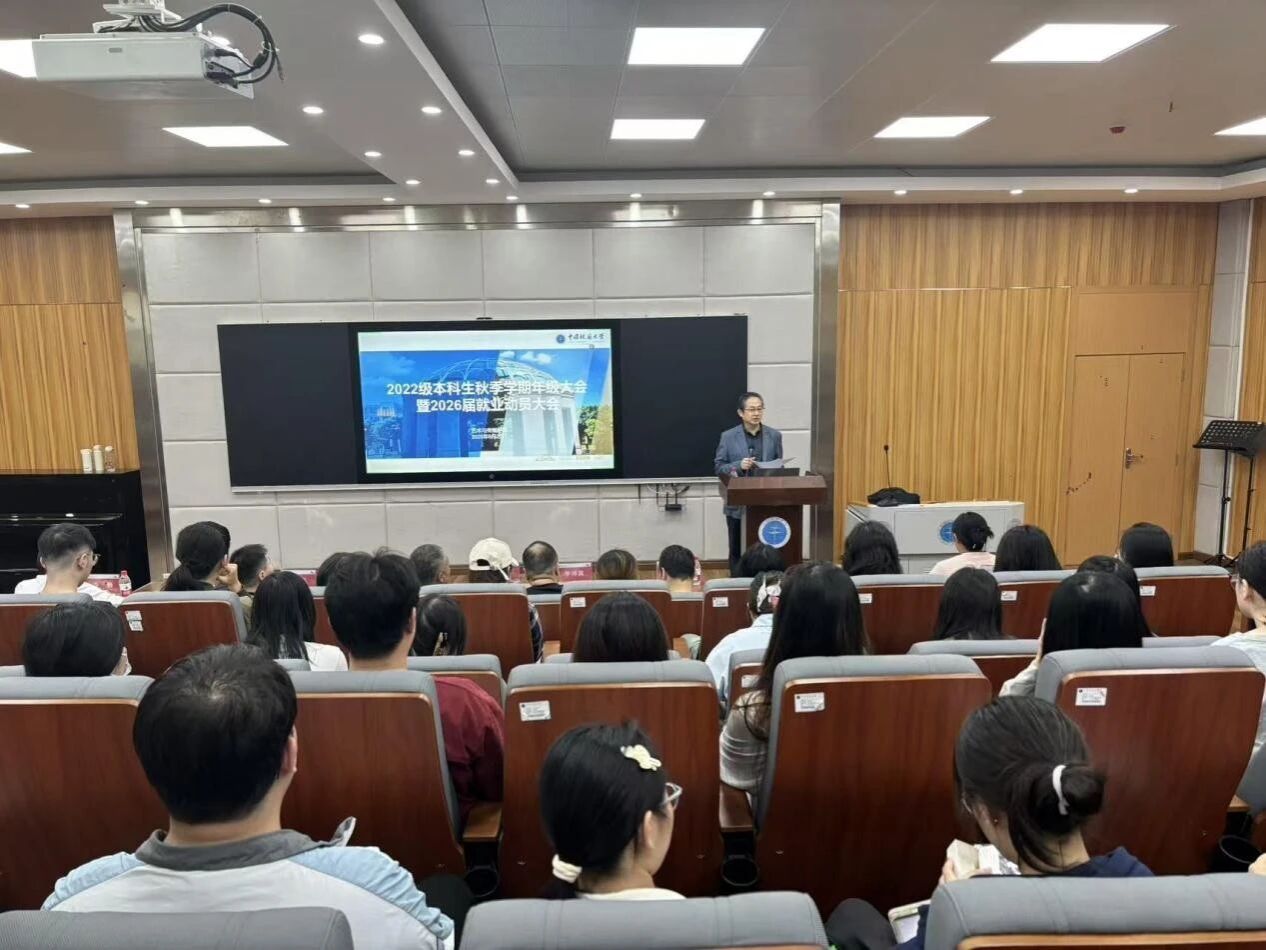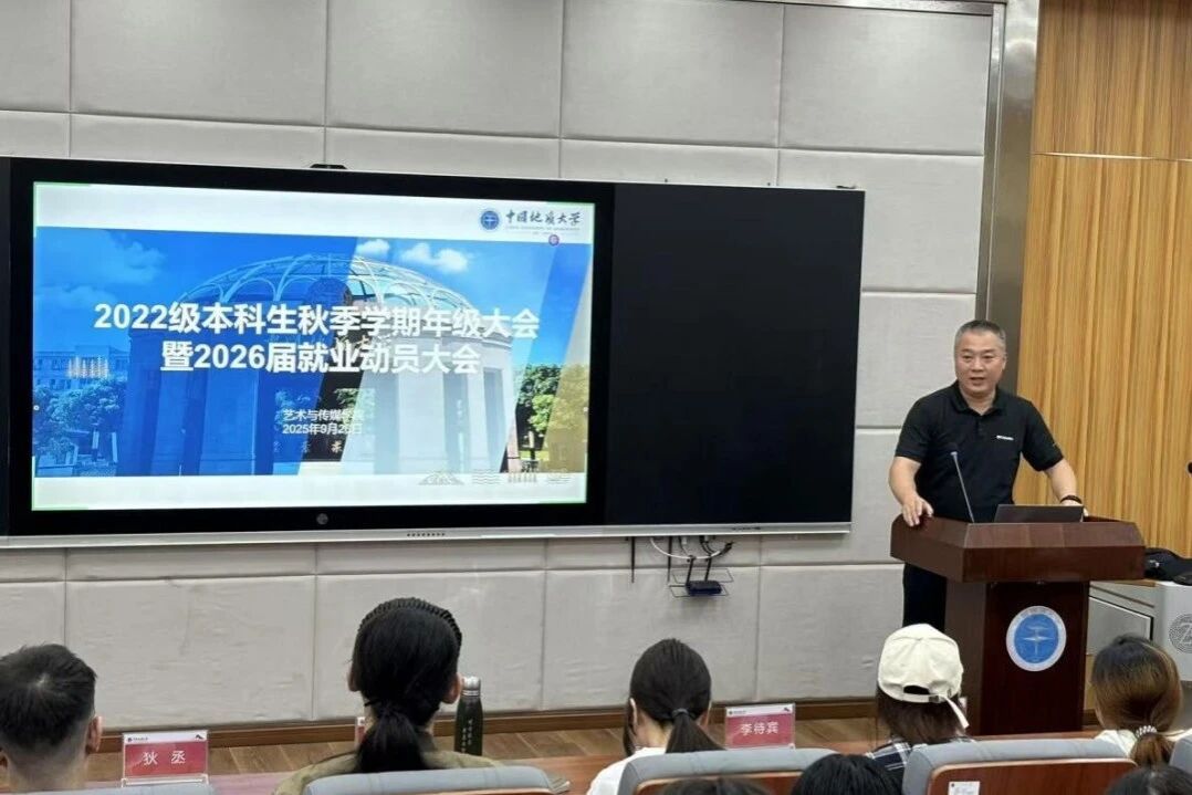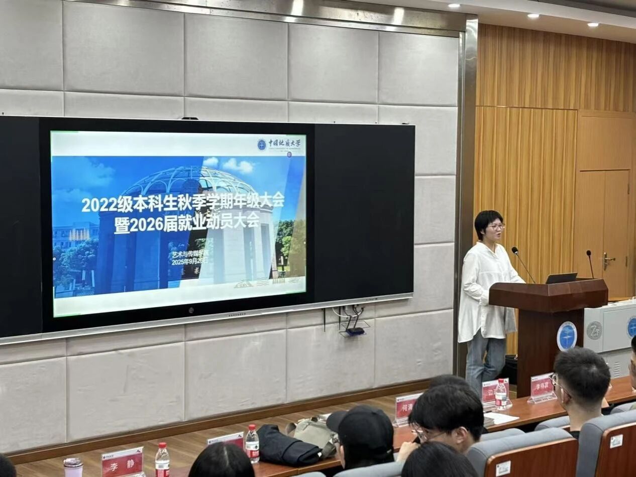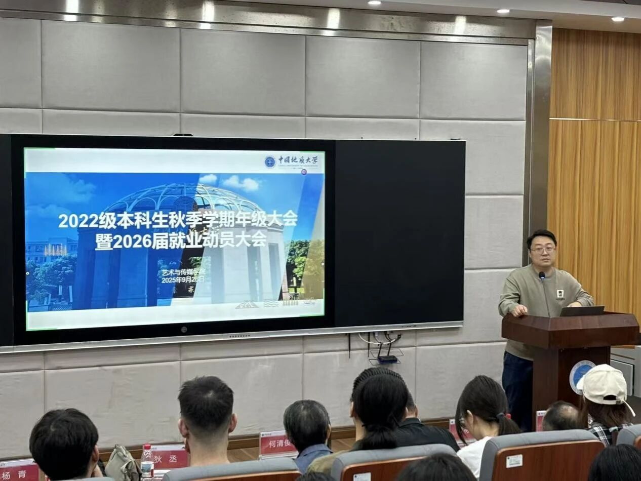 2022级年级大会暨就业动员大会在艺媒楼1114报告厅举行。院长何清俊,党委副书记边建华,视觉与媒体设计系系主任狄丞,环境设计系系主任李待宾,环境设计系系副主任程驰,音乐系系副主任杨青,新闻传播系专业教师、2026届毕业班班主任李静,学工组专职辅导员曾戈晖,兼职辅导员黄灿以及2022级全体学生参加本次大会。此次年级大会由辅导员曾戈晖主持,聚焦2022级本科生关切的最新考研政策、毕业发展规划指导两大核心议题,为同学们搭建起清晰的成长指引平台。