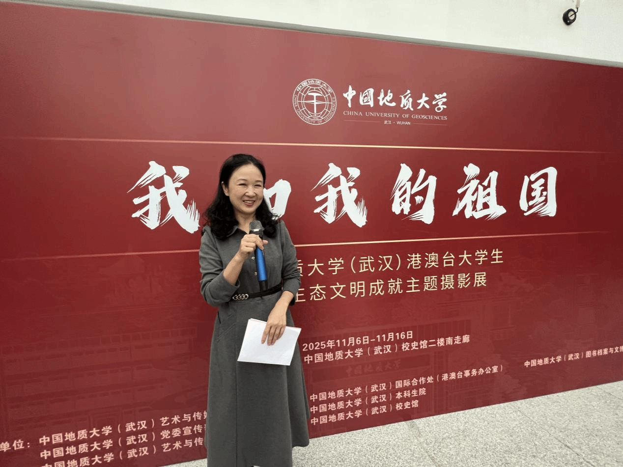 与相关职能部门的共同努力。他特别提到,学校长期重视实践教学,同学们在秭归实习、野外考察中锤炼了意志,也深化了对祖国生态文明建设的理解。此次展出的作品,正是这些实践成果的生动体现,展现了“我和我的祖国”之间深厚的情感联结。