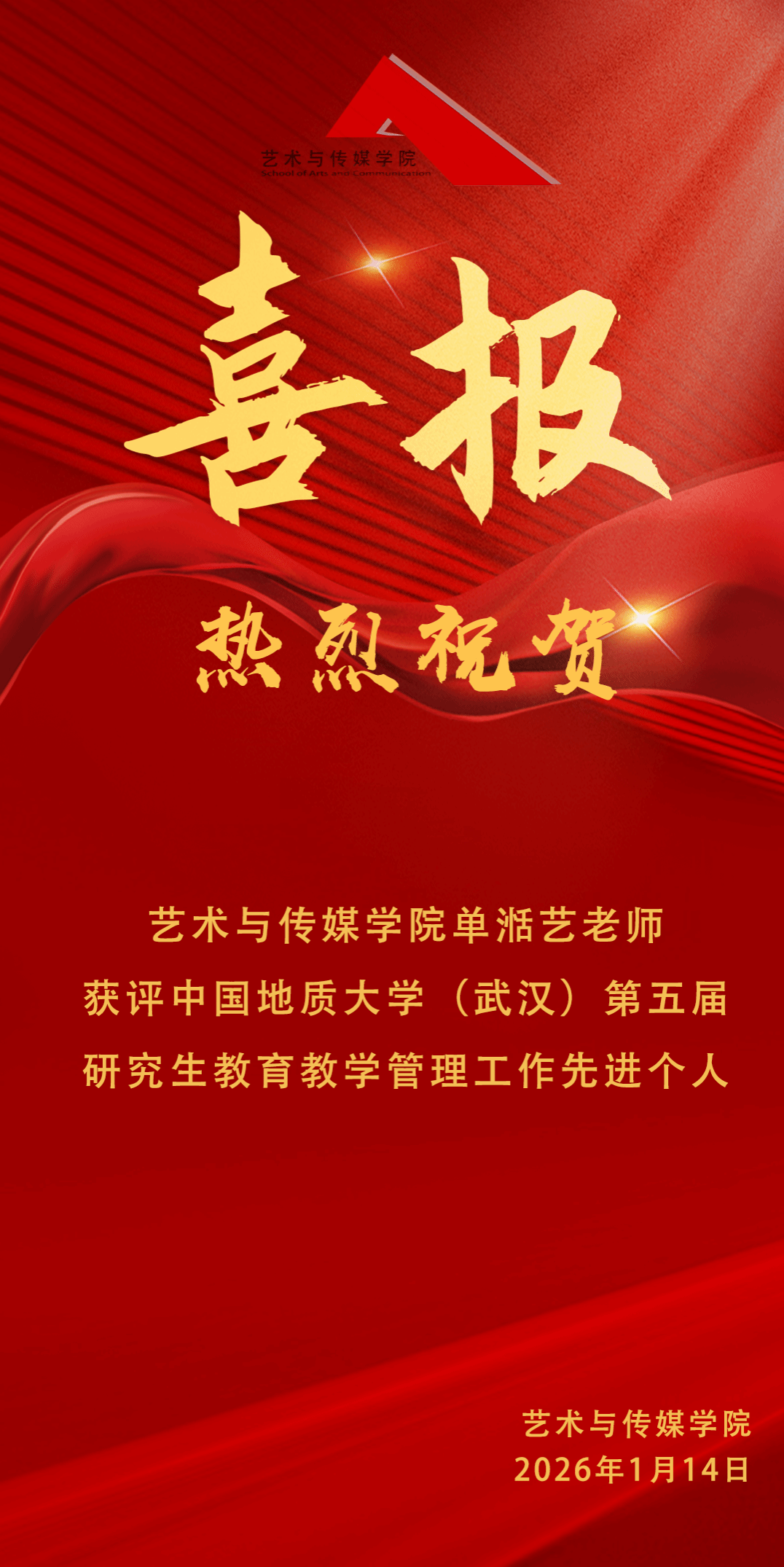 喜报 | 热烈祝贺成人色情单湉艺老师获评成人色情 (武汉)第五届成人色情 教育教学管理工作先进个人!