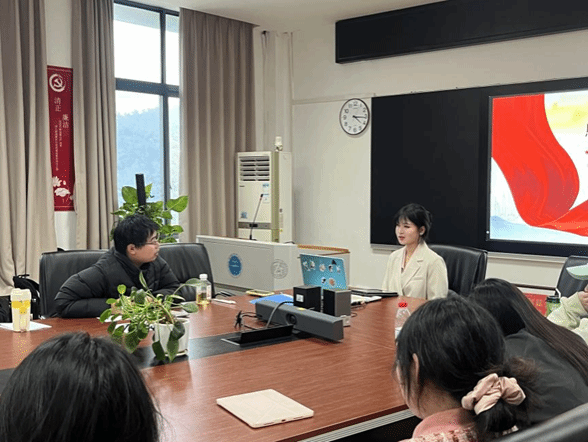 团委书记单湉艺、团委副书记万子炎、王一帆,组织部部长凤嗣梅、秦伊贝以及参赛的团学骨干成员,答辩由凤嗣梅同学主持。
