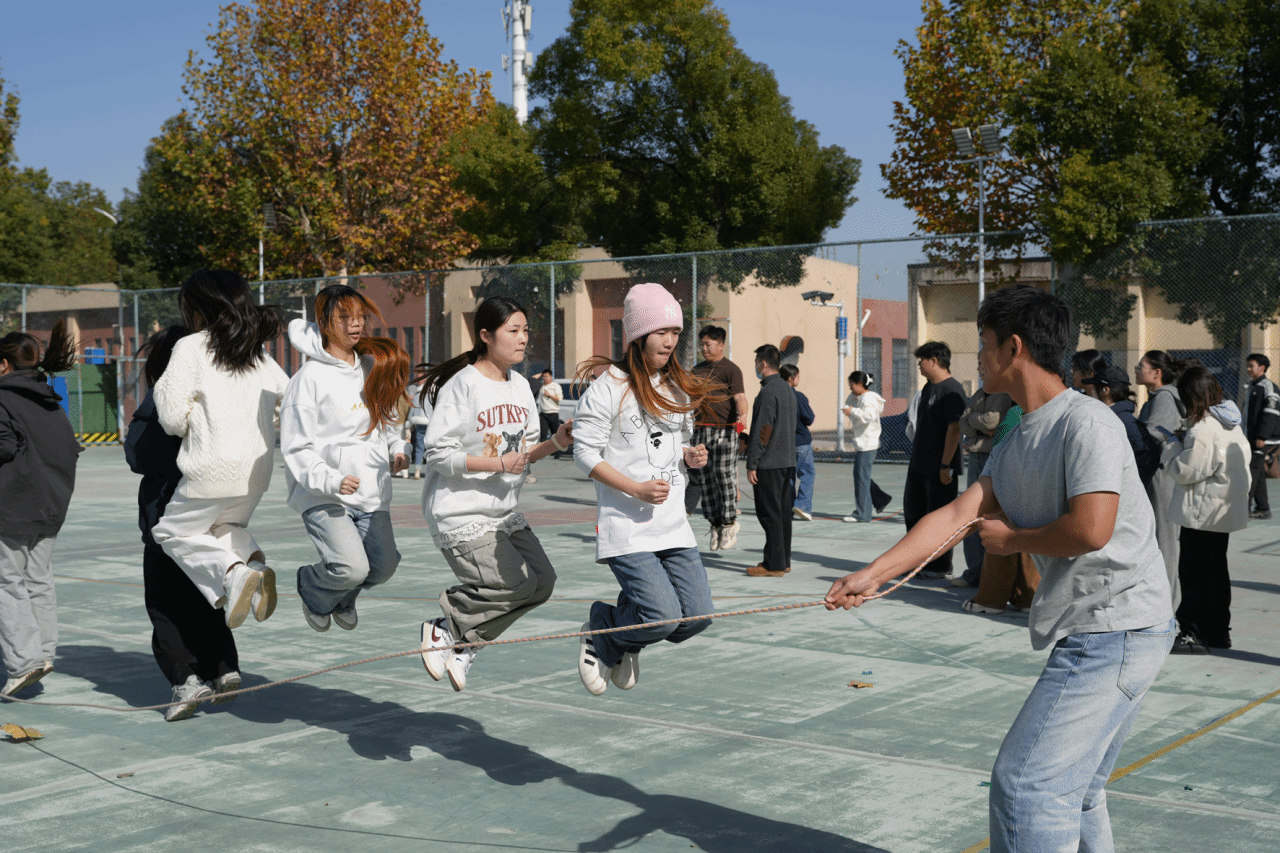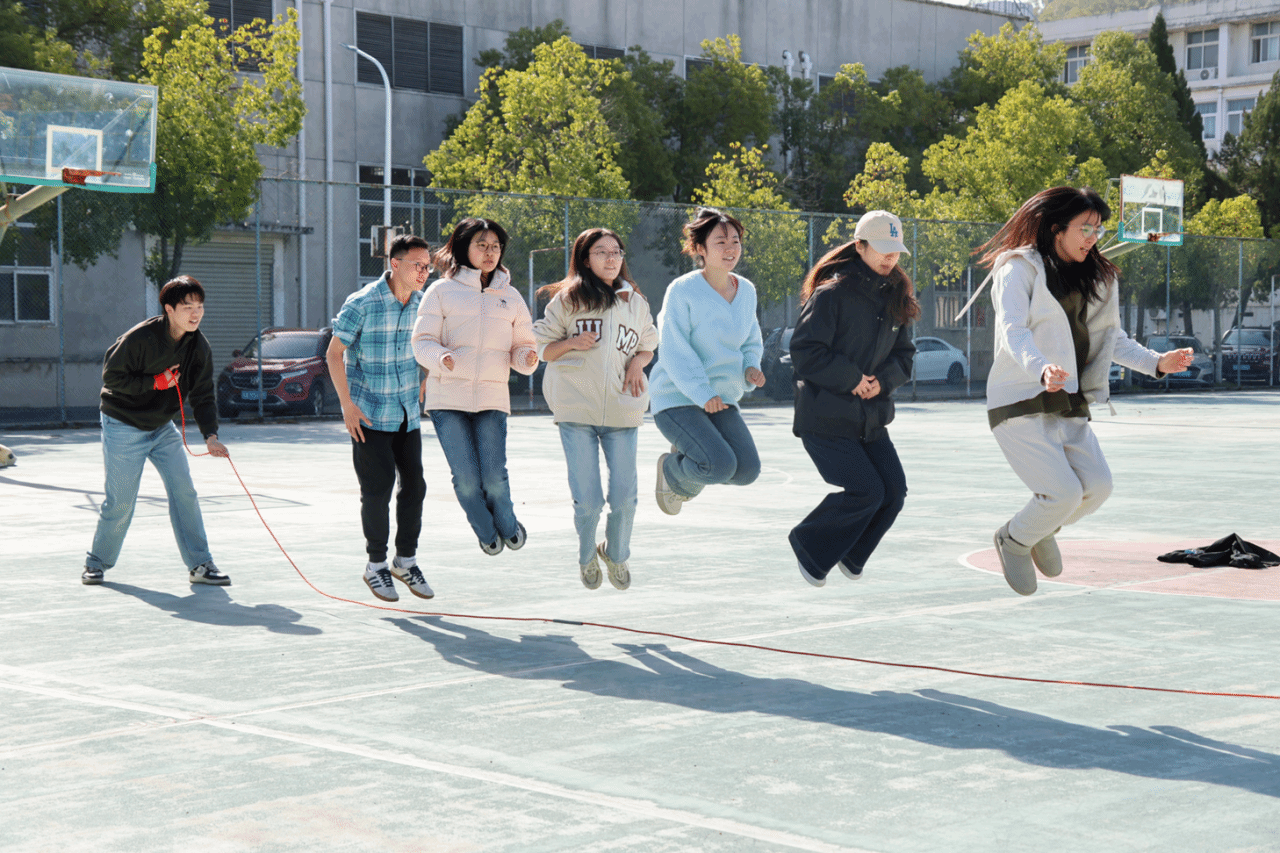 学工组老师们也加入跳绳赛场,为这场青春赛事添上别样温暖。